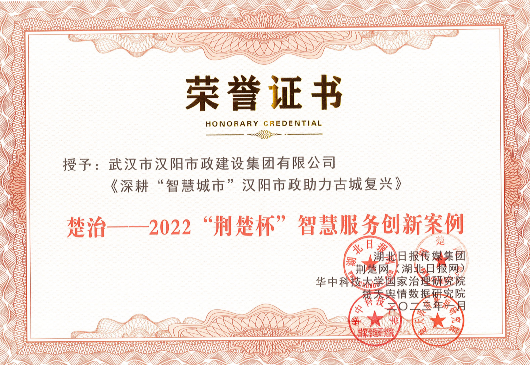 2月16日,由湖北日報傳媒集團主辦,荊楚網(wǎng)(湖北日報網(wǎng))、華中科技大學國家治理研究院和楚天輿情數(shù)據(jù)研究院承辦的“楚治——2022‘荊楚杯’社會治理創(chuàng)新十大案例”公布獲獎名單,由漢陽市政申報的漢陽智慧城建一體化平臺項目案例被評選為智慧服務創(chuàng)新案例。