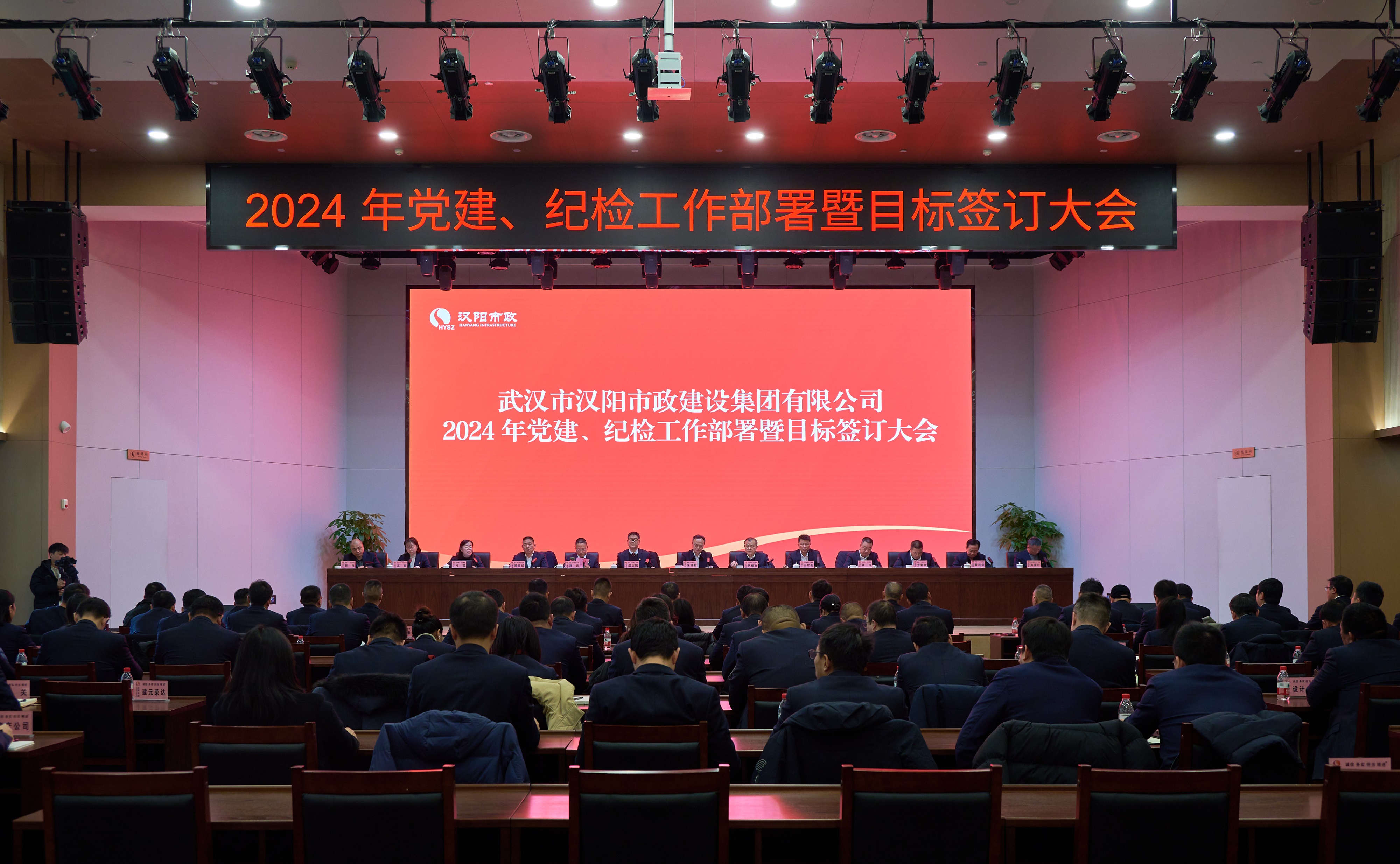 2月28日上午,漢陽(yáng)市政召開2024年黨建、紀(jì)檢工作部署暨目標(biāo)簽訂大會(huì)。漢陽(yáng)區(qū)建設(shè)局局長(zhǎng)朱源松蒞臨指導(dǎo),漢陽(yáng)市政黨委書記、董事長(zhǎng)嚴(yán)悌文,副董事長(zhǎng)虞志鵬,總經(jīng)理王智高等黨委班子成員,集團(tuán)及分子公司副科及以上干部、各部門負(fù)責(zé)人參加會(huì)議。