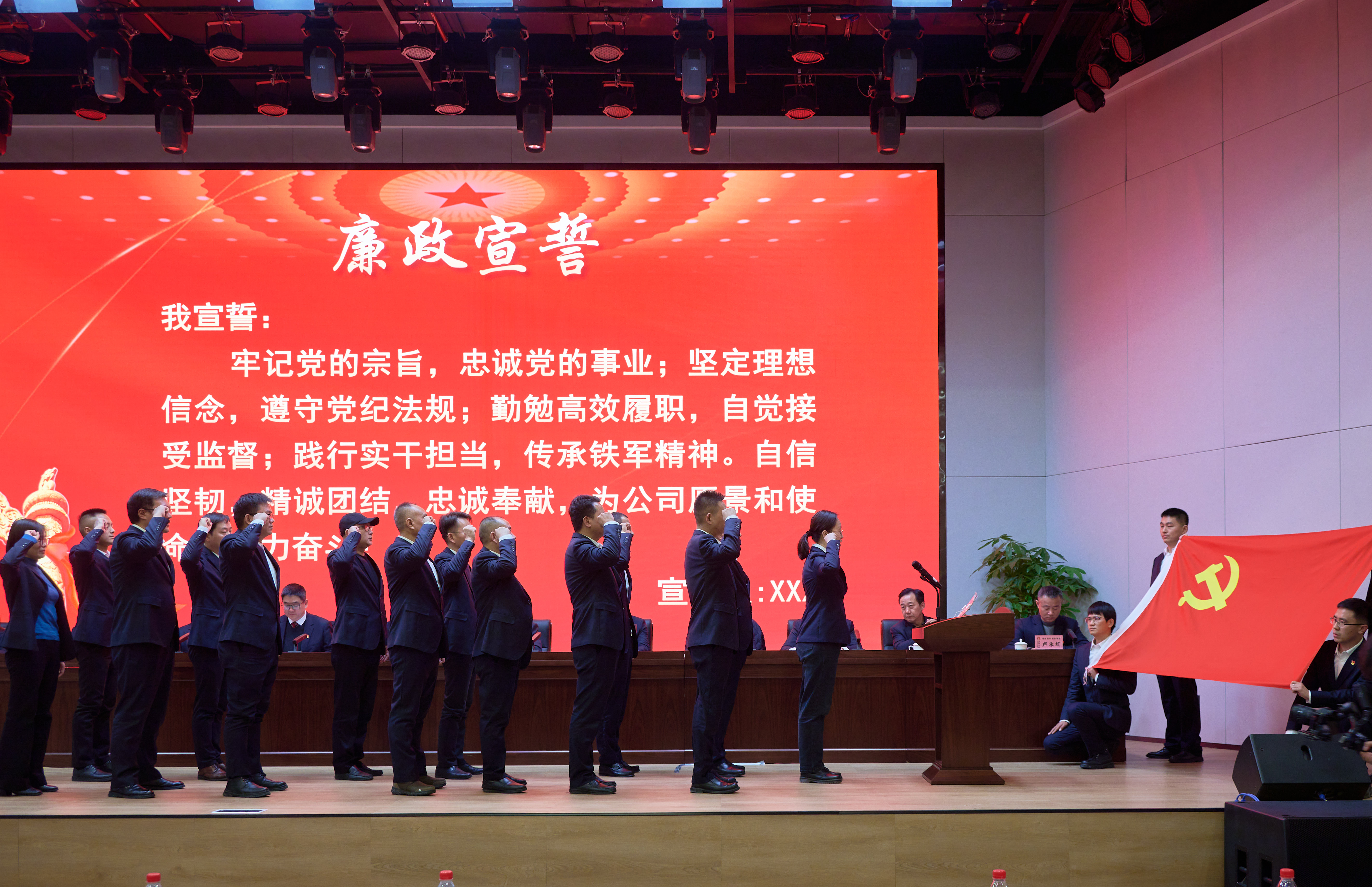 為進(jìn)一步增強(qiáng)黨員干部履行“一崗雙責(zé)”的自覺性和主動(dòng)性,基層黨組織負(fù)責(zé)人帶頭簽訂《黨風(fēng)廉政建設(shè)承諾書》。隨后基層單位負(fù)責(zé)人及2024年崗位調(diào)整干部面向黨旗進(jìn)行莊嚴(yán)的廉政宣誓。