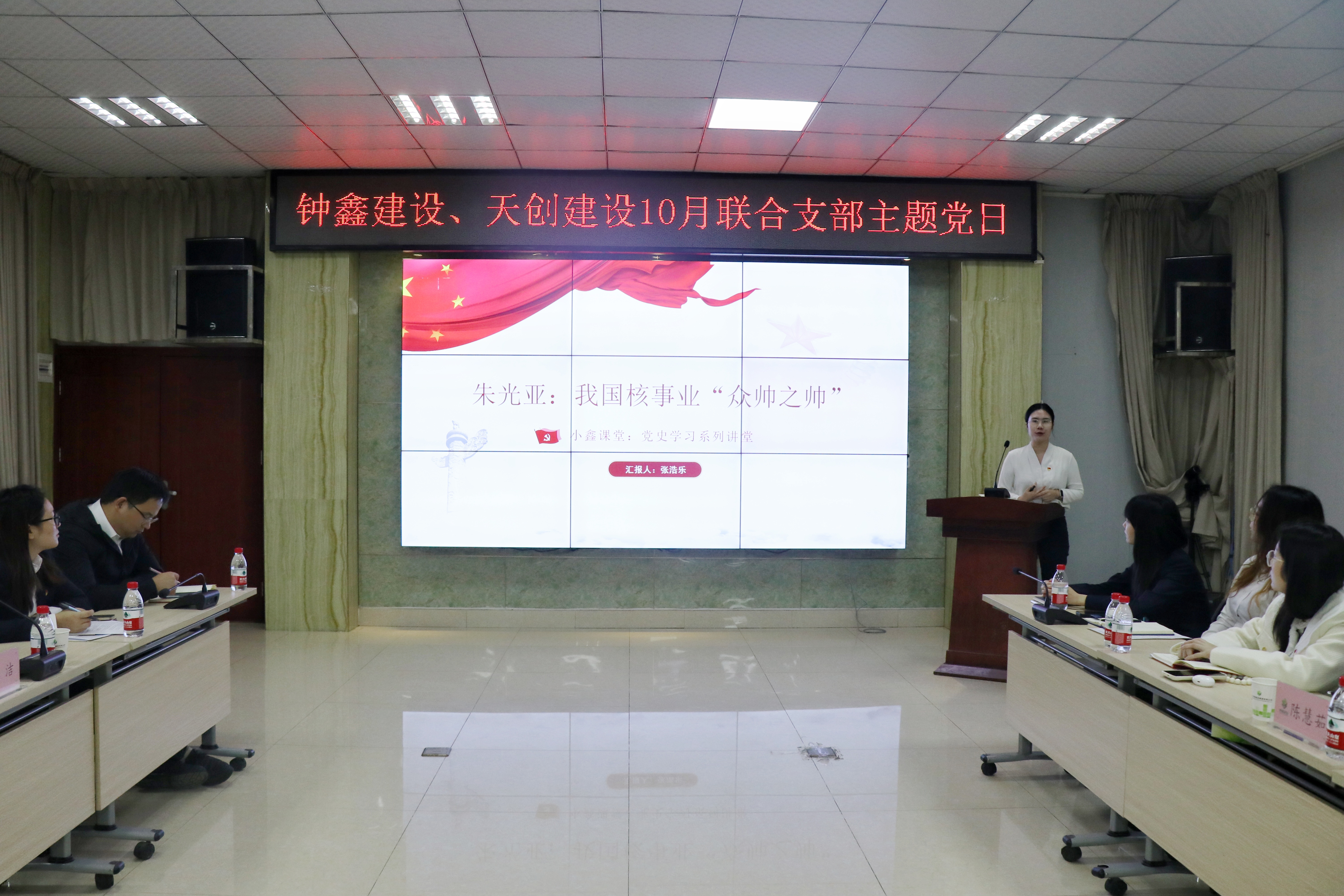 偉大事業(yè)孕育偉大精神,偉大精神引領(lǐng)偉大事業(yè)。黨員現(xiàn)場(chǎng)觀看《精神的追尋——中國(guó)共產(chǎn)黨人精神譜系:“兩彈一星”精神》視頻,從中汲取奮進(jìn)力量;鐘鑫建設(shè)黨員張浩樂同志以黨史課堂的形式,為大家分享了“兩彈一星”元?jiǎng)字旃鈦?ldquo;一生只做一件事”的奮斗歷史,號(hào)召?gòu)V大黨員弘揚(yáng)“兩彈一星”精神,強(qiáng)化擔(dān)當(dāng)意識(shí)。